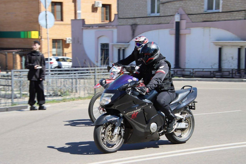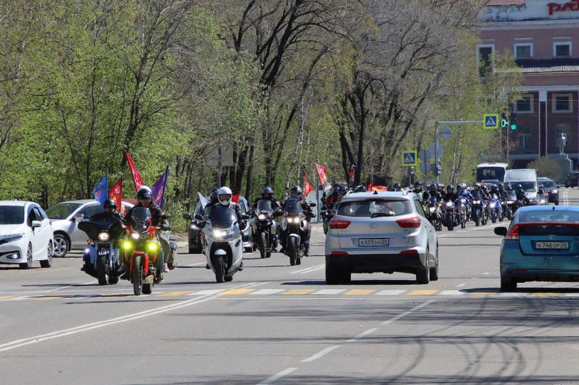 Также сообщается, что к автолюбителям в этом году присоединились мотоциклисты. Акцию организовывало общество «БлагБайк». Десятки байков с флагами тоже проехали организованной колонной, но по маршруту: Амурская — Ленина (Мемориал Славы) — 40 лет Октября — 50 лет Октября — Постышева — Ленина — Малиновского — Прудовая — по объездной дороге к кафе «Лира».
