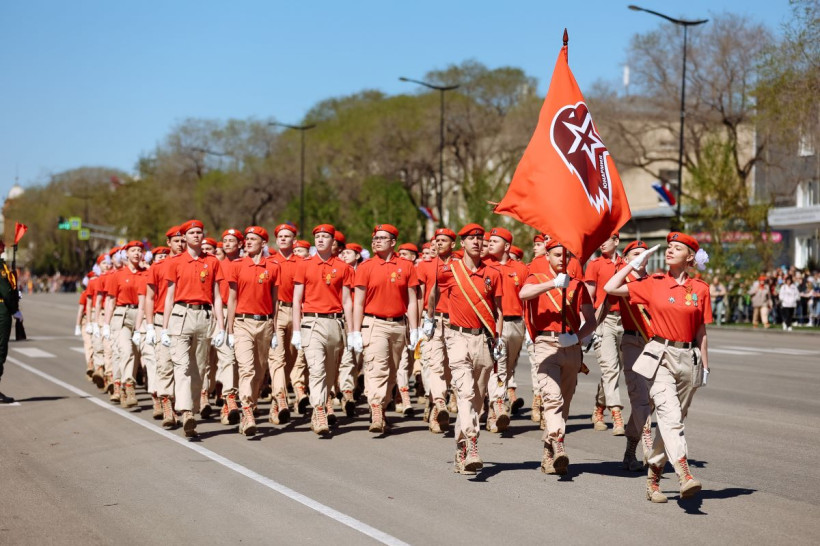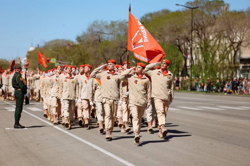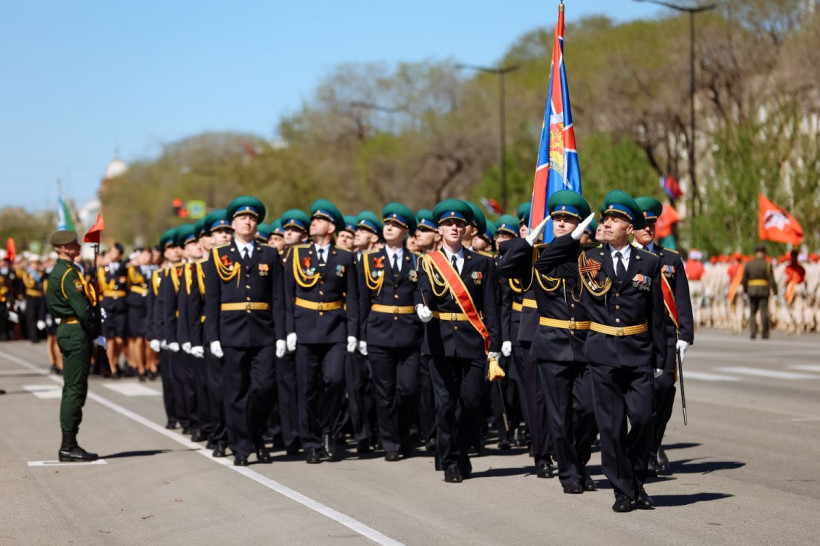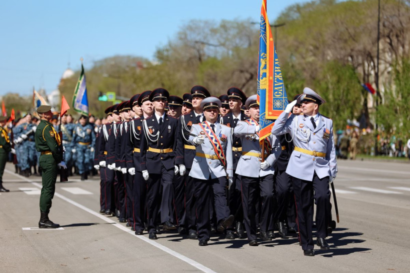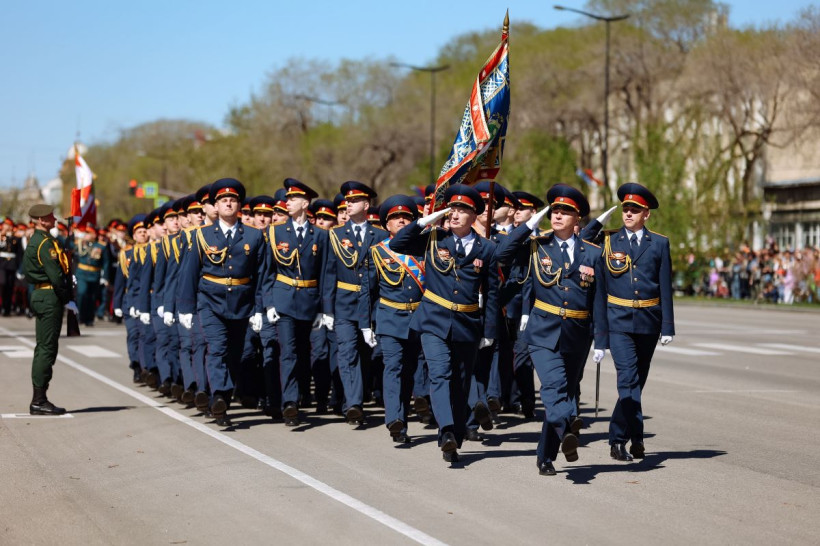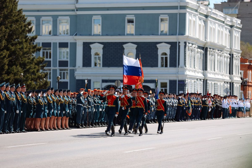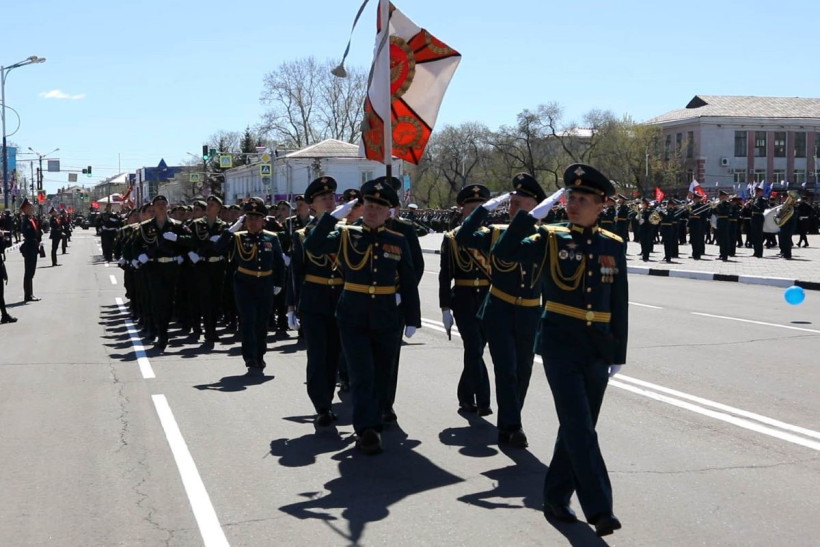 Амурская область празднует День Великой ПобедыБолее 10 тысяч человек собрались в Благовещенске в День Победы, чтобы посмотреть на прохождение войск Благовещенского гарнизона по главной улице столицы Приамурья. 9 мая торжественным маршем вдоль площади Ленина прошли 43 парадных расчета и около 1 700 человек. Среди них — учащиеся кадетских классов благовещенских школ и Амурского кадетского корпуса, офицеры, преподаватели, курсанты ДВОКУ, в том числе и из иностранных государств, воспитанники и руководители военно-патриотических клубов, сотрудники Пограничного управления ФСБ России, МЧС, полиции, службы исполнения наказаний, амурские казаки и ветераны боевых действий.