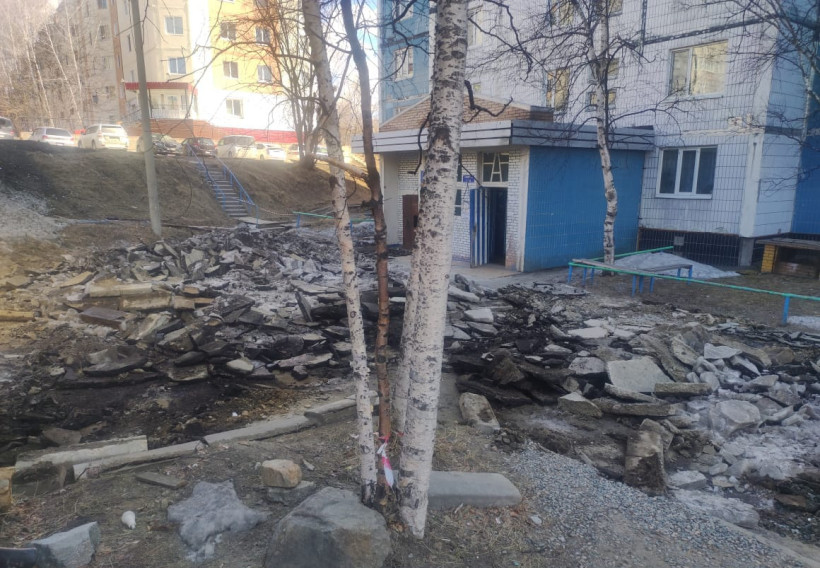 В амурском минЖКХ сообщают, что подъезды к домам временно перекрыты, однако горожане относятся с пониманием.