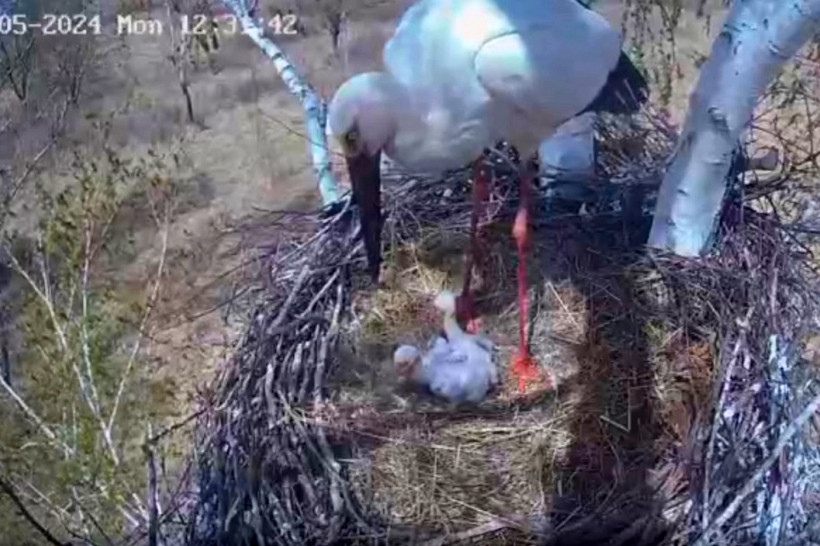У звездной пары аистов из Березовского заказника вылупились все четыре птенца. Последний пернатый малыш появился за те четыре дня, когда камера, установленная для наблюдения за пернатыми, была сломана.
