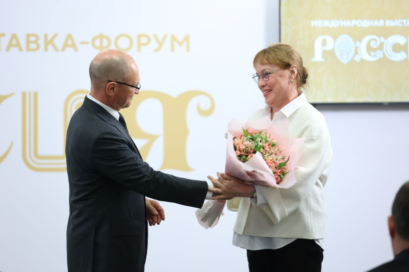 На международной выставке-форуме «Россия» отметили вклад регионов в обновление экспозиции и старт нового этапа, посвященного будущему страны. Амурская область удостоена приза в номинации «Лучшая тематическая экскурсионная программа». Его зампреду регионального правительства Светлане Яковлевой вручил председатель оргкомитета выставки, первый заместитель руководителя администрации президента России Сергей Кириенко.
