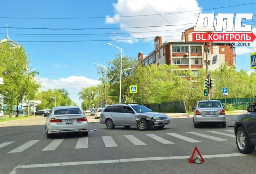 О пострадавших пока не сообщаетсяЖесткое ДТП случилось в субботу, 18 мая, в центре Благовещенска. На Зейской — Богдана Хмельницкого столкнулись две иномарки — Toyota Caldina и Nissan Tiida Latio. Удар был такой силы, что первая вылетела на тротуар. Фото с места происшествия опубликовал telegram-канал dpskontrol_28rus.