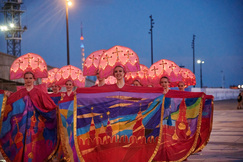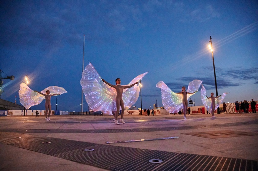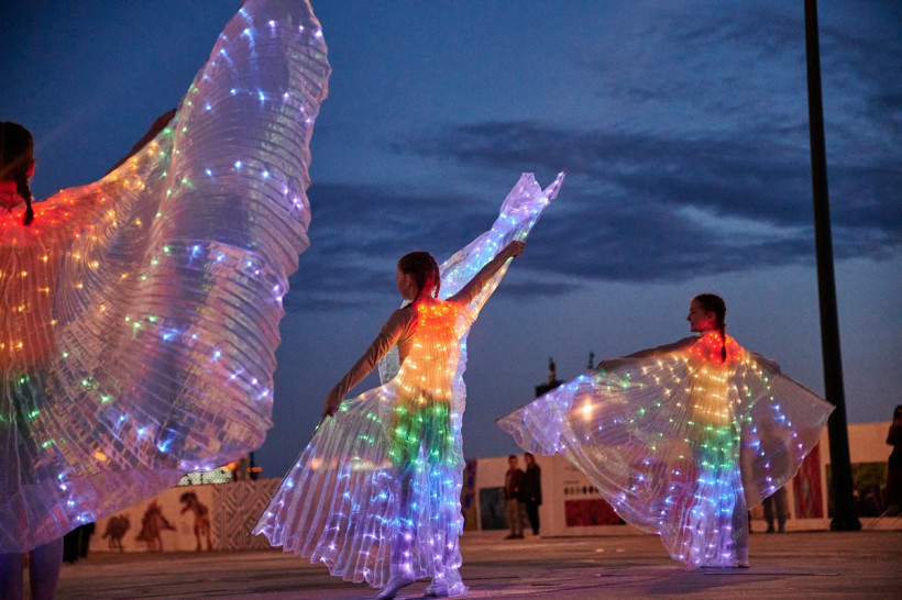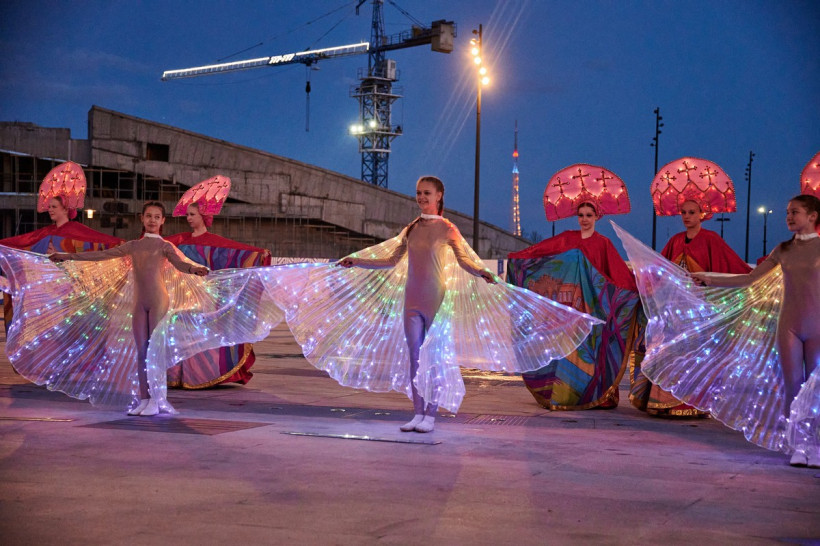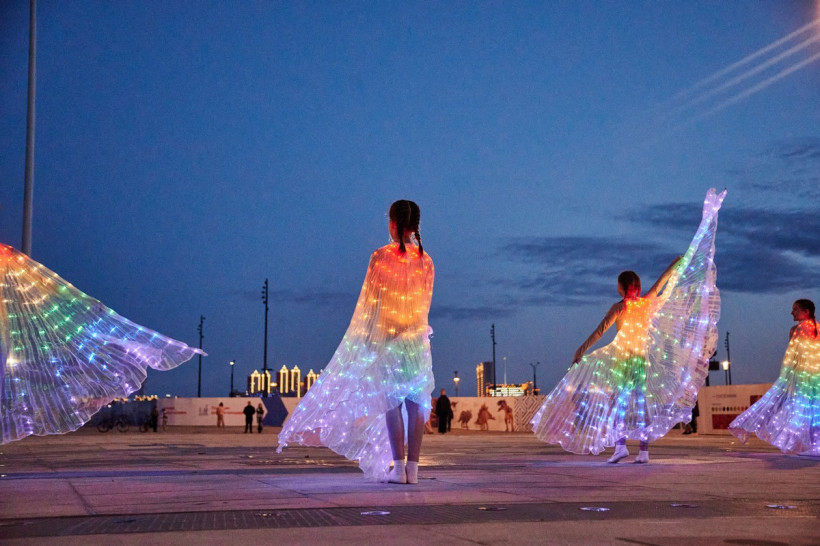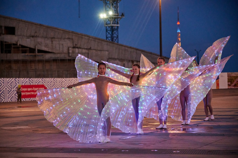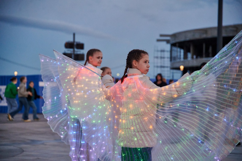 Струи действительно танцевали под музыку, окрашиваясь в разные цвета благодаря прожекторам, которые установлены рядом с форсунками. Зрители смогли увидеть и «крылья лебедя», и сердца, и другие водяные фигуры. В перерывах между композициями фонтан окутывался туманом.