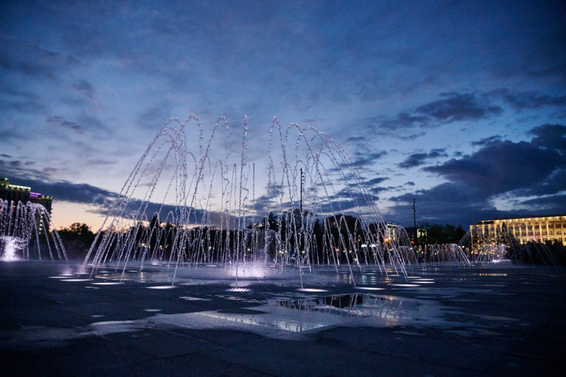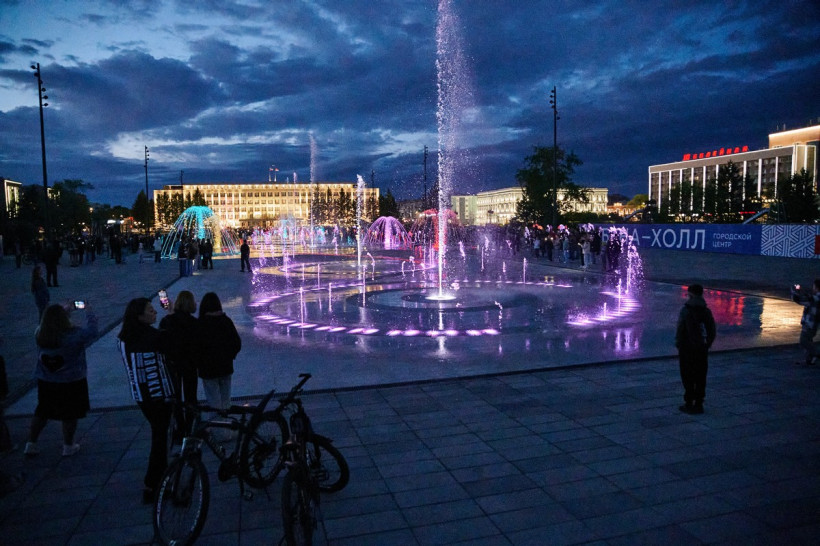 Строительный забор, которым была огорожена площадь последние годы, перенесли еще несколько дней назад. Горожанам стала доступна большая часть аллей, детские площадки и, конечно же, фонтан. У некоторых получилось даже увидеть тестовые запуски по вечерам. Однако оценить всю красоту фонтанного комплекса удалось только на его полноценном запуске.