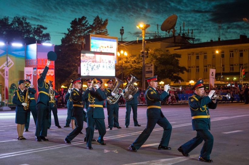 Грандиозное дефиле всех участников станет «изюминкой» фестиваля и пройдет на набережной Амура в районе амфитеатра. В состав сводного оркестра войдут 350 лучших военных музыкантов.