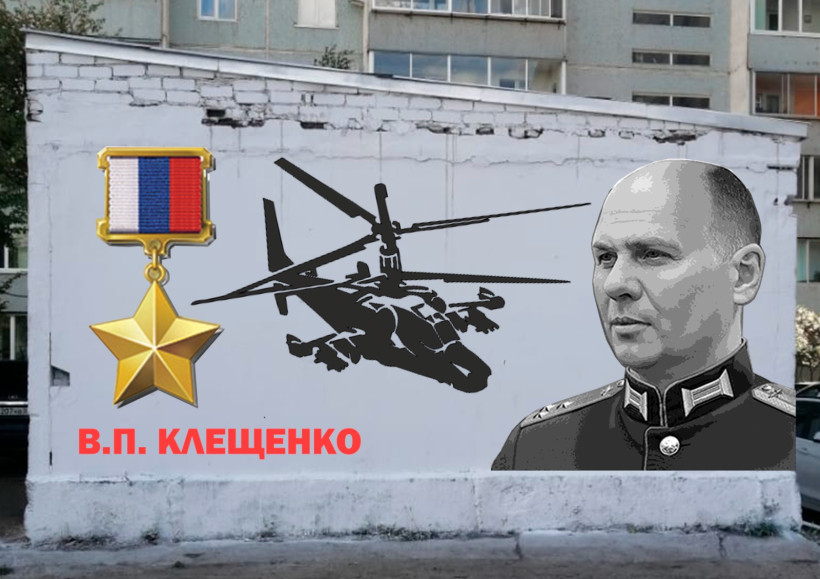 Портрет Героя России полковника Василия Клещенко появится на стене в Благовещенске на Калинина, 61. Это проект инициативных горожан и известного художника в стиле стрит-арт Максима Кузнецова-Мельникова. Рядом с портретом военного изобразят и его верного боевого друга — вертолет Ка-52, известного как «Аллигатор». На нем Василий Клещенко отправился на боевое задание, в нем и остался на поле боя — навсегда. Летчик погиб 15 апреля 2022 года при исполнении воинского долга.
