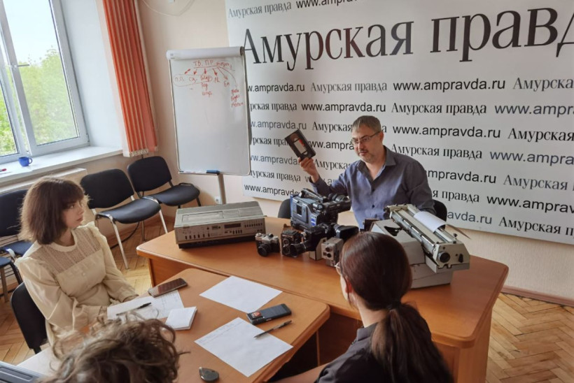 Гендиректор издательского дома «Амурская правда» Евгений Басенко рассказал и показал юным амурчанам, как раньше пользовались такой техникой, чтобы создавать фоторепортажи и сюжеты на телевидении. Магнитофоны с VHS-кассетами, громоздкие видеокамеры и печатные машинки — то, что многим школьникам кажется раритетом из далекого прошлого, раньше служило верой и правдой журналистам и телевизионщикам.