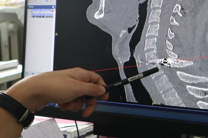 — У пациента был выраженный тетрапарез. Даже без снимков можно было определить, что поврежден спинной мозг. На КТ наши догадки подтвердились: пуля пробила дужку позвонка и застряла в позвоночном канале, — рассказывает нейрохирург Антон Грибов.