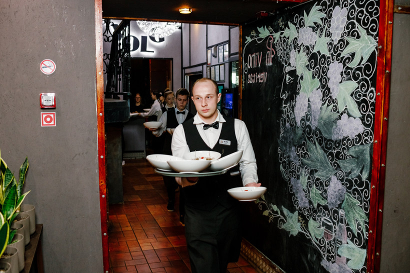 Александр Райлян также представил татаки из лосося с перечным соусом, палтус с соусом унаги, авокадо и воздушной гречкой и на десерт — сырный мусс с маринованным ананасом и юдзу (японский лимон). Рыбные блюда были не просто вкусные. Рыба буквально таяла во рту, хотелось смаковать каждый кусочек. Но, честно сказать, долго наслаждаться блюдами было некогда. Бармен и сомелье уже наливали в бокалы другое вино, официанты ставили на стол новые тарелки. Кстати, вина были все российские. И, конечно, не те, что в магазине стоят 500 рублей.
