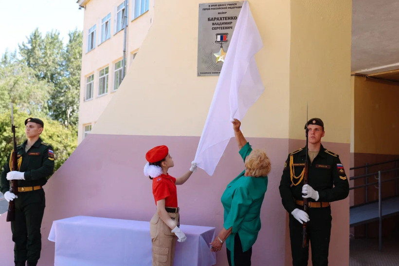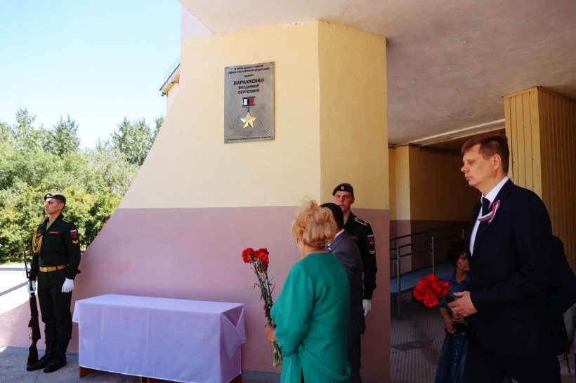 Мемориальную доску в честь участника спецоперации майора Владимира Барахтенко торжественно открыли в День России в благовещенской школе № 26. Звание Героя России выпускник этой школы получил посмертно. Он погиб во время выполнения очередного задания на Украине 7 ноября 2022 года. Эта мемориальная доска в городе уже шестая по счету.