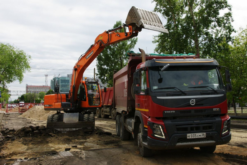 В Благовещенске подрядчик приступил к ремонту улицы 50 лет Октября по дорожному нацпроекту