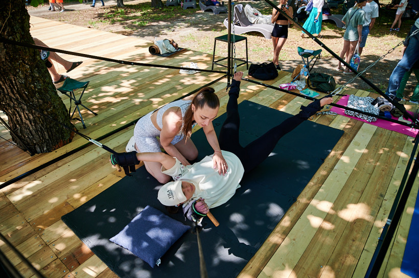 — Это древнеславянский тренажер для восстановления осанки и опорно-двигательного аппарата. На нем можно работать людям с любым уровнем подготовки. Это маленькая переносная версия, в студии у нас есть большой, где можно прорабатывать сутулость, сколиозы, зажатость мышц, — рассказала инструктор тренажера «правИло» Алёна Полоз. — Мы уже как-то выставлялись на набережной на День России, решили прийти и сюда, чтобы у людей была возможность познакомиться с таким инструментом.