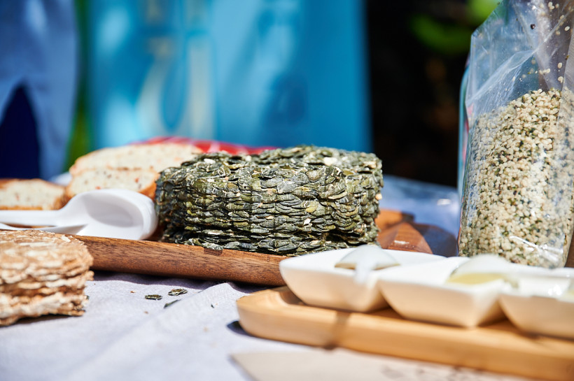 Нутрициолог Елена Самарина приехала, чтобы представить публике свою продукцию. Она вместе с мужем готовит живые сыродавленные масла.