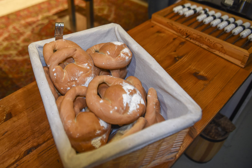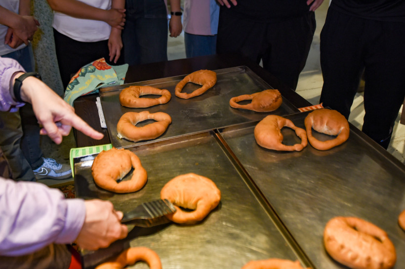 Параллельно на кухне, которую отлично видно из калачной (это соседнее помещение, отделенное стеклом), пекут калачи посетителей. Двадцатиминутный экскурс в историю пролетает незаметно под чай с калачом. В конце экскурсии всем выдают их уже готовые изделия. «Они похожи на сумку», — разглядывают свою выпечку студенты.
