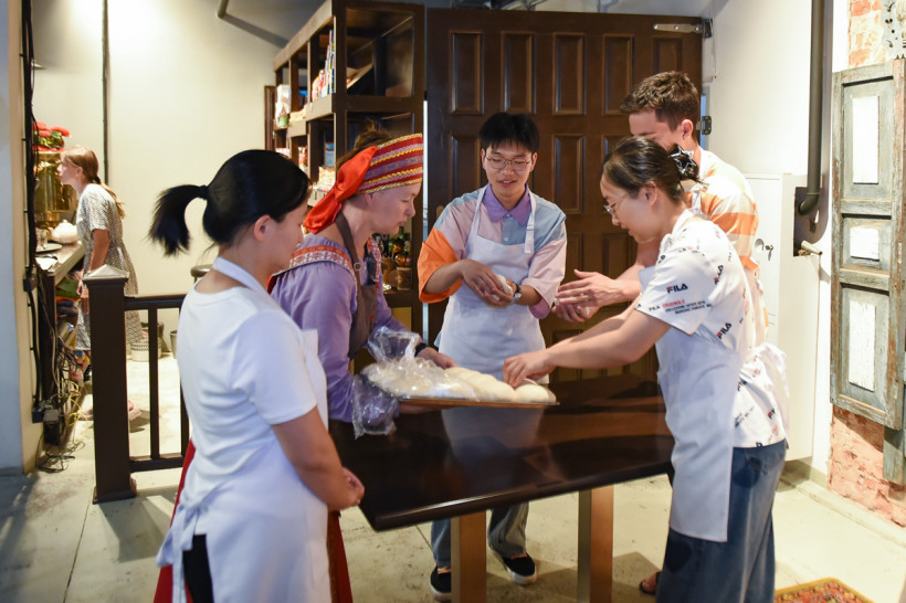 Приходит время закладывать начинку. На столах появляется две тарелки. В одной — колбаса с сыром, во второй — сладкий творог. Студенты удивленно смотрят на второй вариант. Творог до этого пробовали только два человека из группы. Дело в том, что в китайской культуре сладкого творога как блюда нет в принципе.