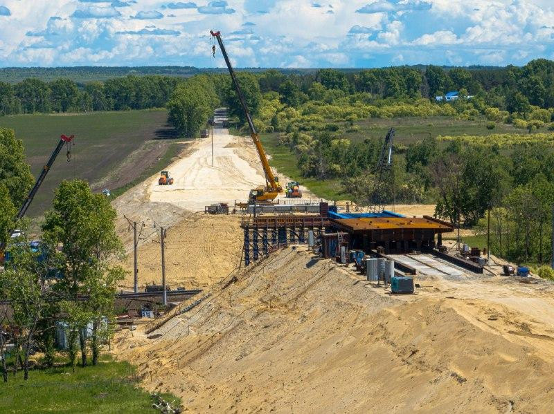 Строители собирают пролетное строение для путепровода в поселке Серышево