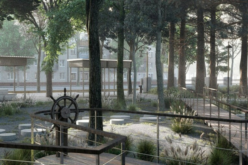 Первый шаг под названием «Город рядом» предусматривает создание карманных парков — компактных зеленых зон в уже сложившейся застройке. Именно в этой категории отметился сквер водников. Проект общественного пространства для Благовещенска разработал Центр развития территорий Амурской области — в соответствии со своим народным наименованием в тематике судостроения и судоходства.
