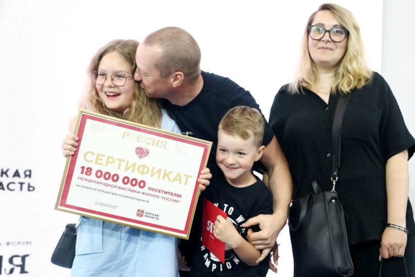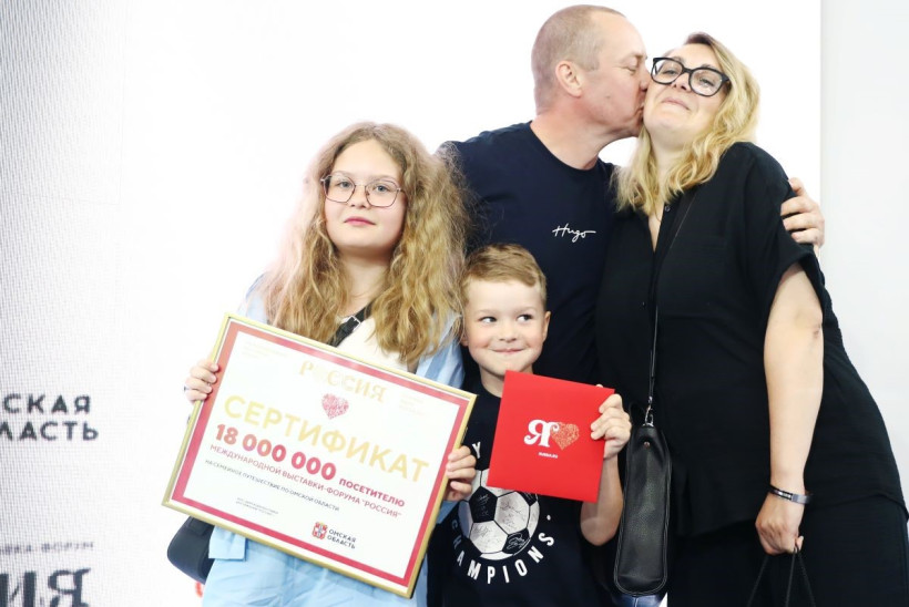 Международная выставка-форум «Россия» 8 июля завершает работу. За несколько дней до закрытия ее посетил 18-миллионный гость. Им стала Елизавета Савина из города Владимира. Девочка выиграла семейное путешествие в Омскую область. Вместе с ней подарочный сертификат получили ее родители — Алексей и Ксения и младший брат Макар.