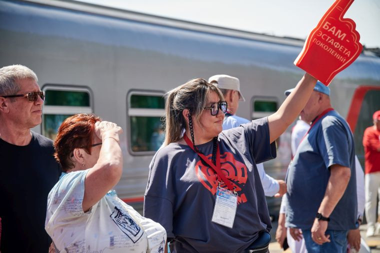 Эстафетный поезд с ветеранами-строителями БАМа встретили на вокзале Тынды