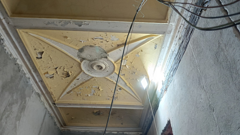 Представитель подрядчика отметил, что одной из сложных частей работ в здании стало восстановление декоративных элементов. С них нужно снять образцы, затем залить формы и смонтировать замену старым элементам.