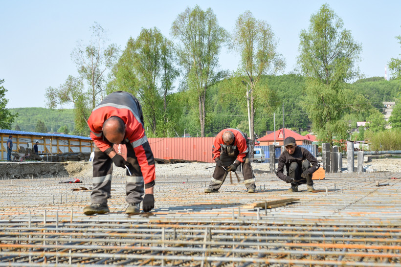 Рядом с ФОКом строится бассейн — он станет подарком поселку к следующему Дню металлурга. Фото: Алексей Сухушин