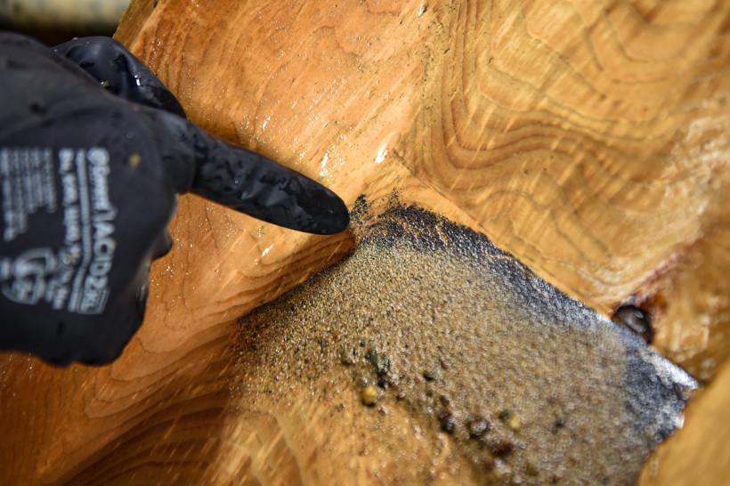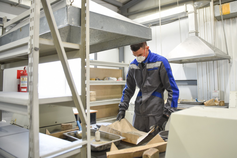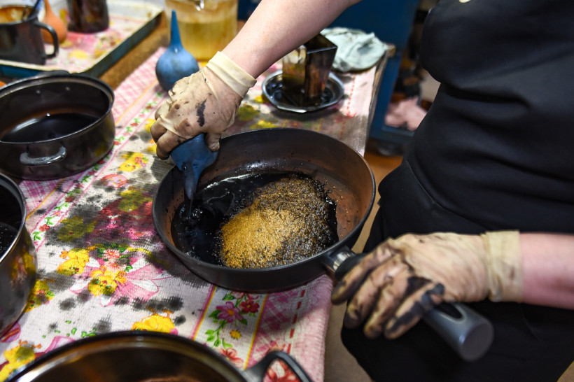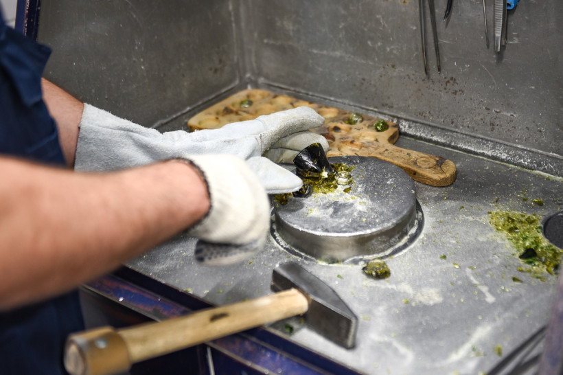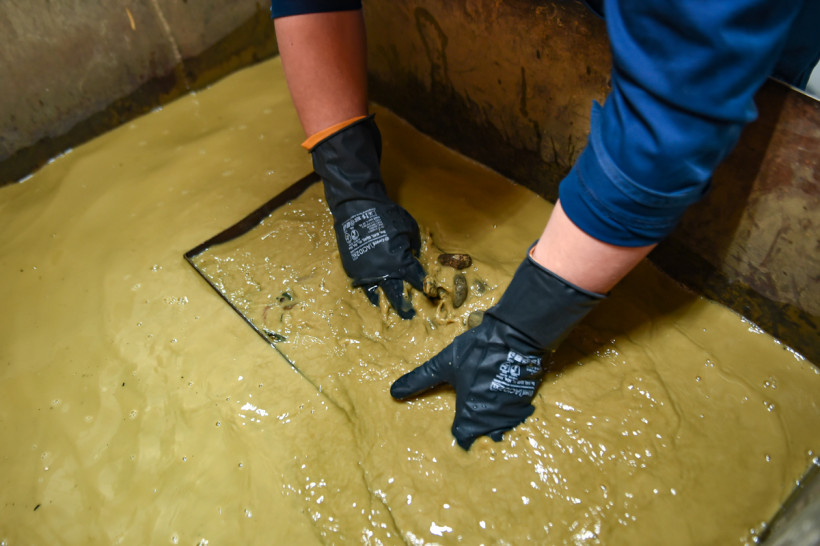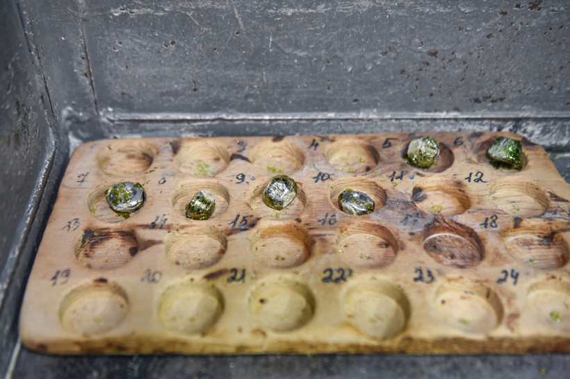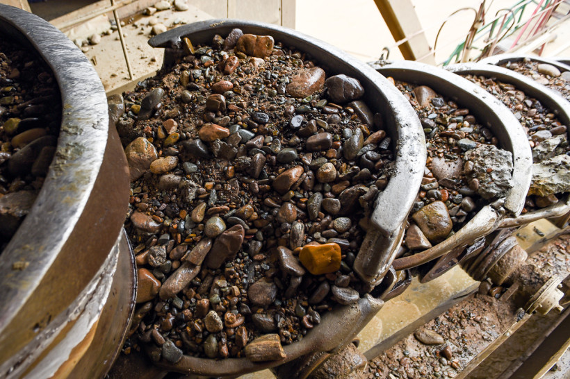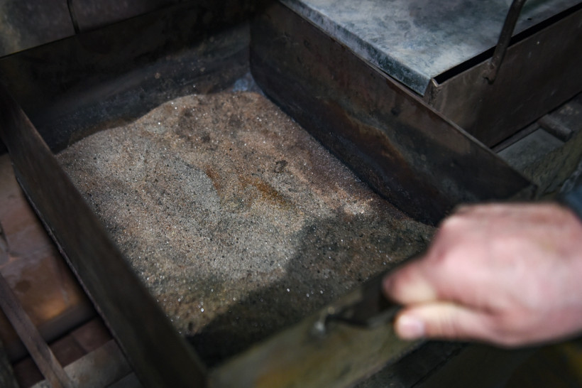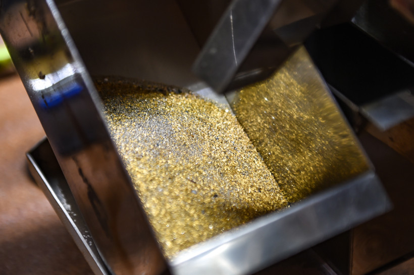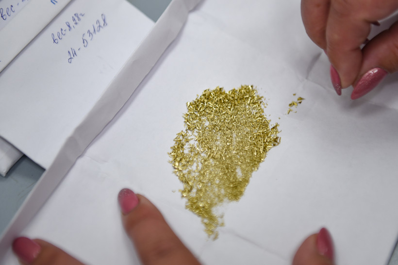 В помещениях лаборатории привезенные с разных участков породы измельчают до консистенции муки, соединяют с реагентами, а затем отправляют на плавку. Главный «волшебник» — свинец, он забирает в себя серебро и золото, эту массу снова плавят, чтобы избавиться уже от свинца, а затем варят в азотной кислоте, чтобы отделить золото от серебра. В химическом зале золото изучают в жидком виде — пробы с карьеров разваривают в царско-водочном растворе (смесь соляной и азотной кислот), а затем с помощью специального прибора оценивают содержание драгметалла. Есть в лаборатории и самое современное оборудование, с помощью которого можно определить содержание 21 элемента из таблицы Менделеева. Такие данные необходимы геологам в начале освоения месторождения.