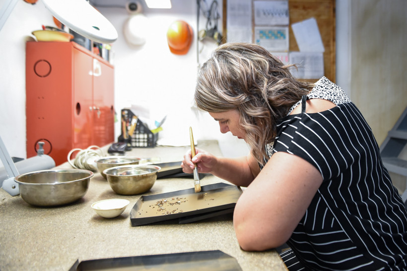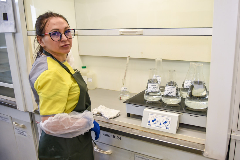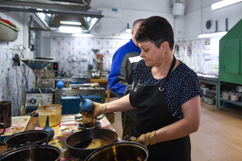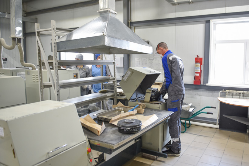 — Суть нашей деятельности — это поисково-оценочные работы. Мы оцениваем содержание золота в руде, в том числе это важно для дальнейшей перспективы рудного направления, — говорит начальник лаборатории Ольга Шитова. — Сегодня в штате 92 человека — от 22 до 54 лет. Основной метод — пробирный, с его помощью определяем содержание золота и серебра в руде и продуктах переработки. Проводим также химический анализ и анализируем конечный продукт — определяем содержание золота и серебра в слитках, которые изготавливают на нашей фабрике.