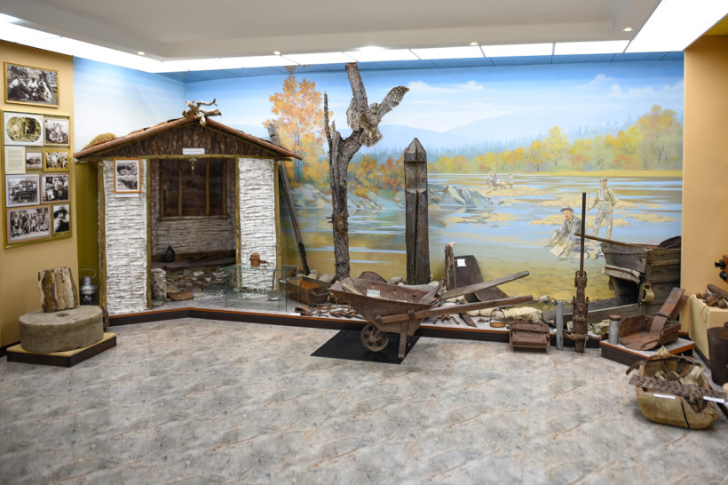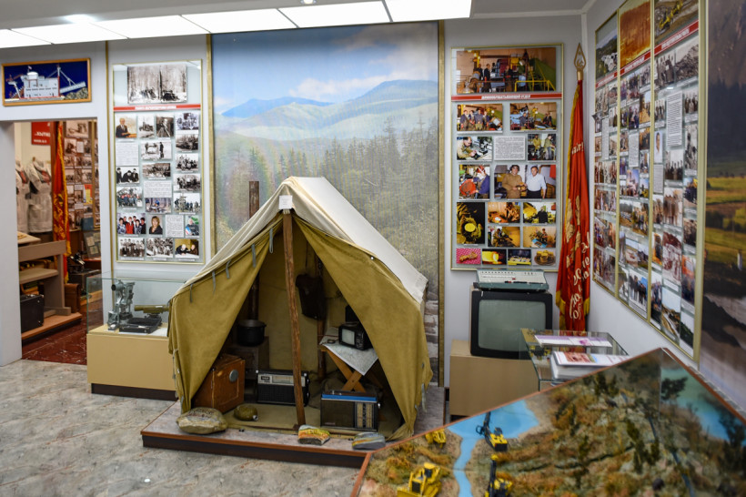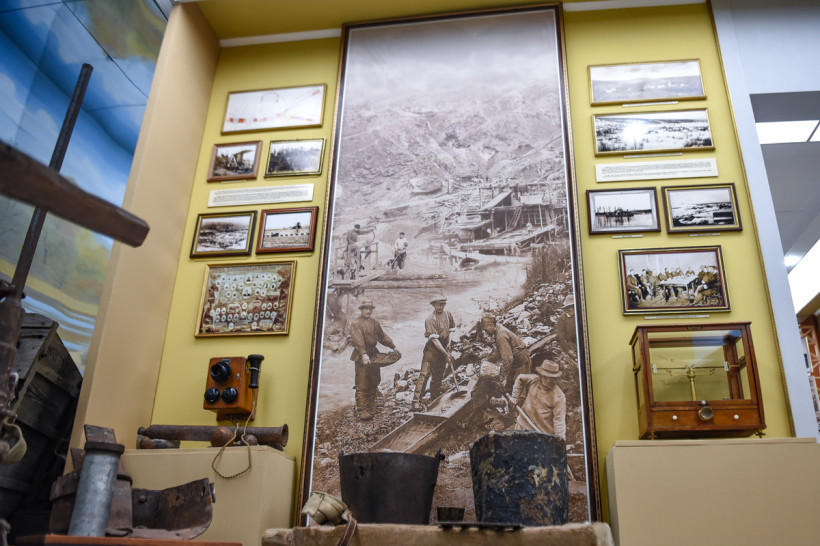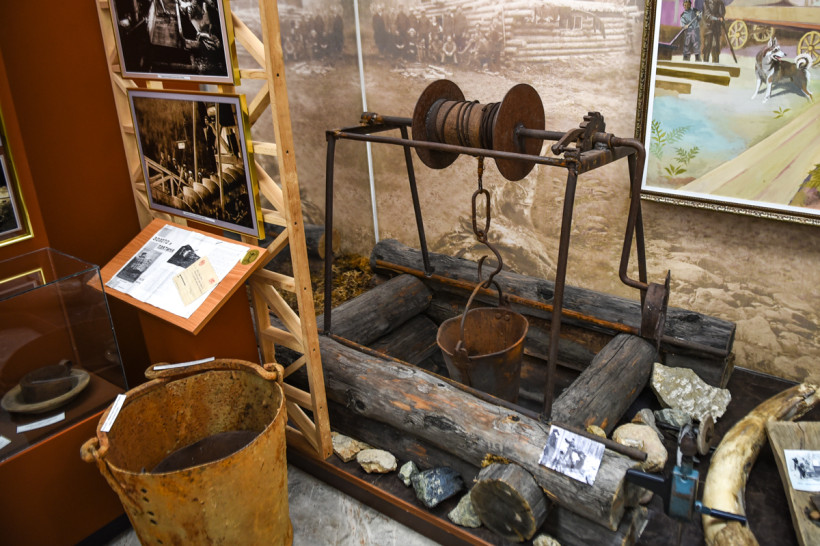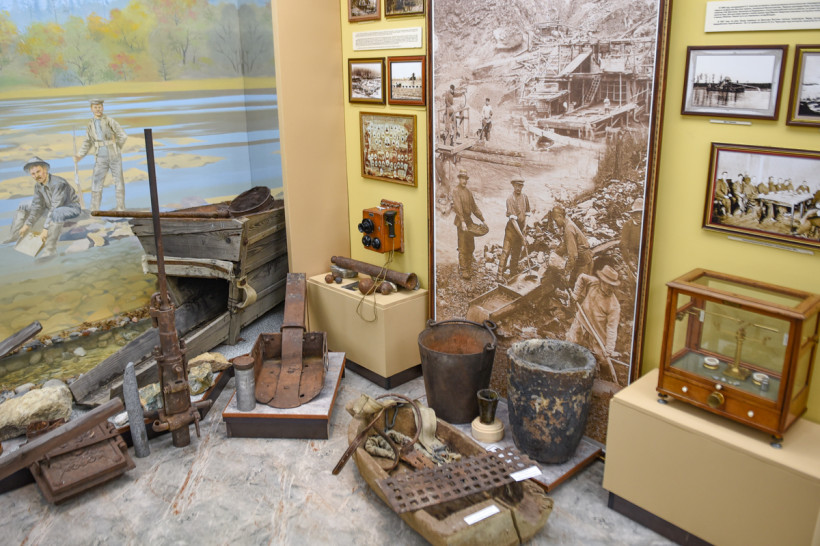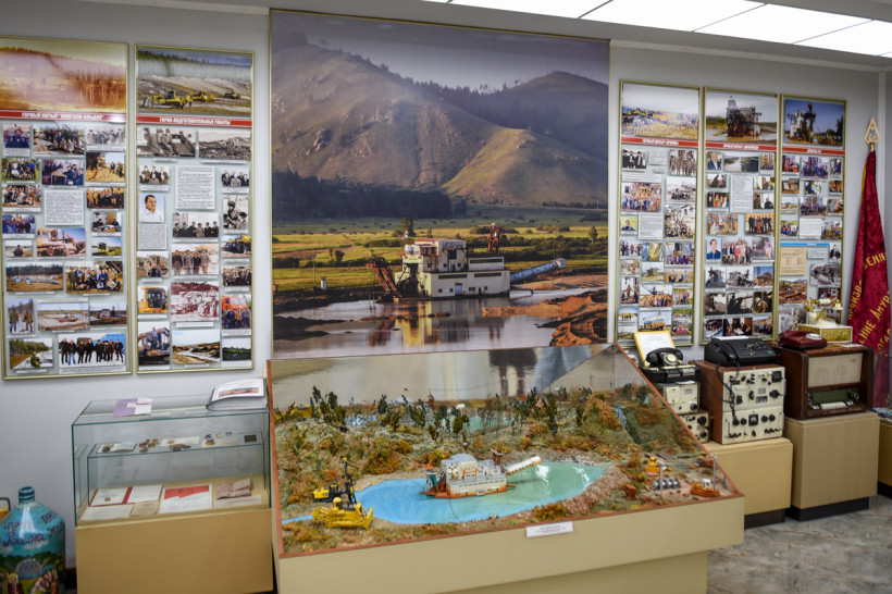Здесь можно увидеть выкопанные на территории села рог шерстистого носорога, «добытые» драгой бивни мамонта, деревянные лотки и настоящий домик, в котором жили старатели, — лиственнице, из которого построено жилье, более 100 лет. История золотодобычи не только в артефактах — со стен музея смотрят на своих потомков с фотографий золотодобытчики, которые начинали строить карьеры без современной техники — первыми и главными помощниками тогда были лошади. Каждый гость может почувствовать себя золотодобытчиком, сев за макет пульта драгера. И музей будет наполняться дальше — история золотодобычи вершится прямо сейчас.