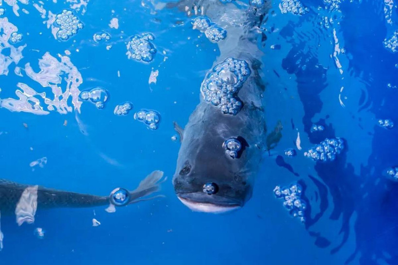 Отмечается, что мальки амурского осетра помечены флуоресцентными красителями: мечение рыб существенно расширяет возможности их исследования в естественной среде обитания.