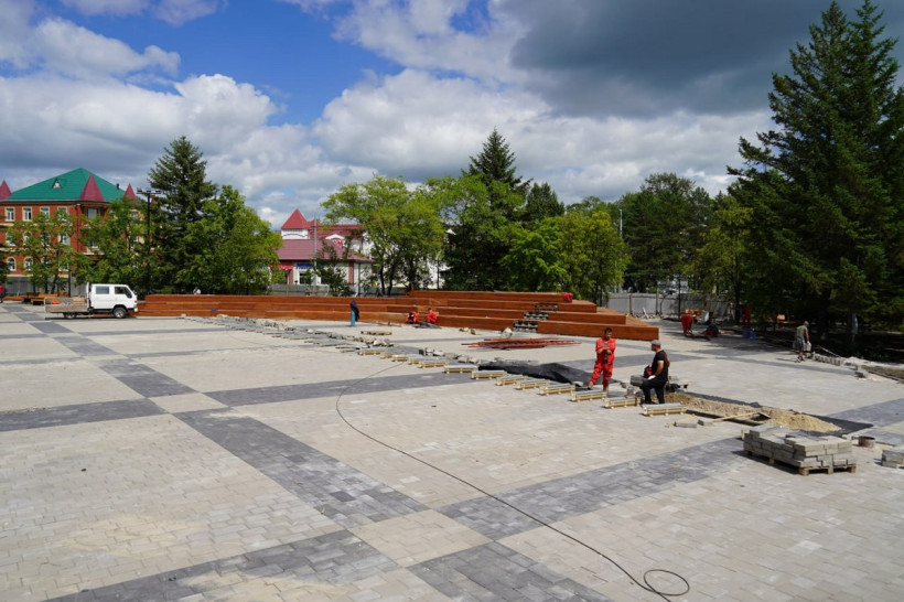 По сообщению свободненской администрации основное покрытие площади готово уже на 80 процентов. На детской площадке для малышей установлены малые архитектурные формы, залит бетон под дальнейшую укладку резиновой крошки, чтобы мамам с детьми было комфортнее здесь гулять. В этой же части установят скамейки с теневыми навесами.