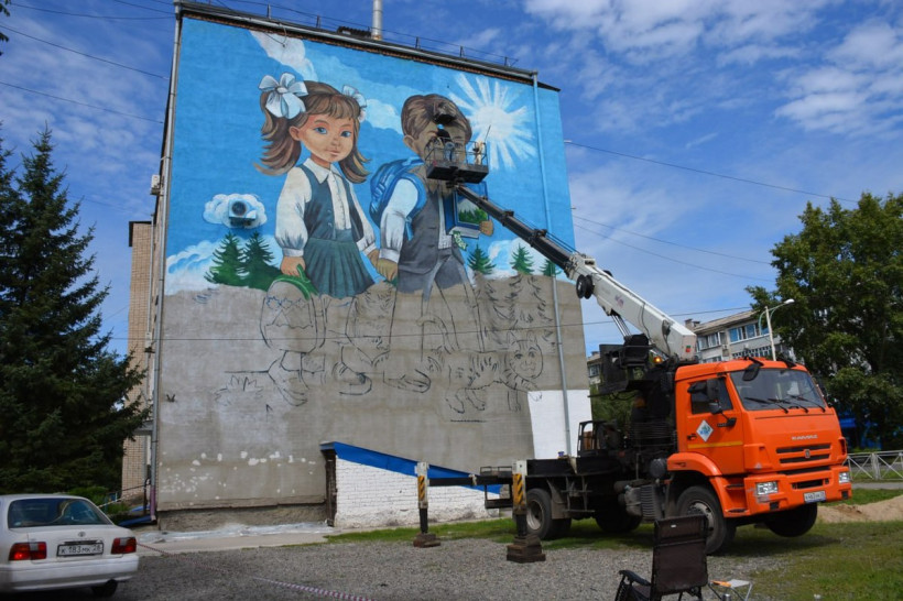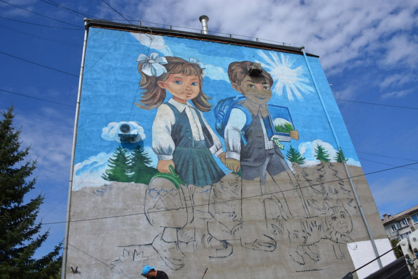 В городе вежливых людей началось создание второго мурала. Об этом в понедельник, 12 августа, сообщили в пресс-службе белогорской администрации. Изображение мальчика и девочки с ранцами и книгой наносят на фасад многоэтажного дома по улице Ленина, 66, который стоит напротив школы № 17.