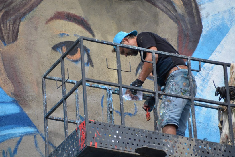 — На него ушло четыре дня и более 200 литров краски, — поделился цифрами мастер. — На самом деле работа была достаточно сложная, много лиц, которые необходимо было изобразить максимально живыми, но в тоже время и абсолютно бесстрастными, потому что они несут флаг. Много важных деталей. Да и тема очень серьезная. Плюс ко всему светило яркое солнце и было ощущение, что я нахожусь в пустыне.