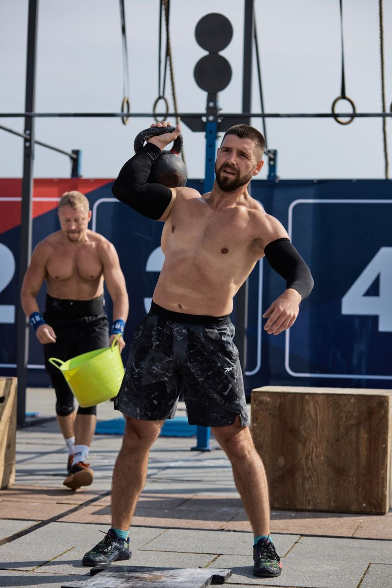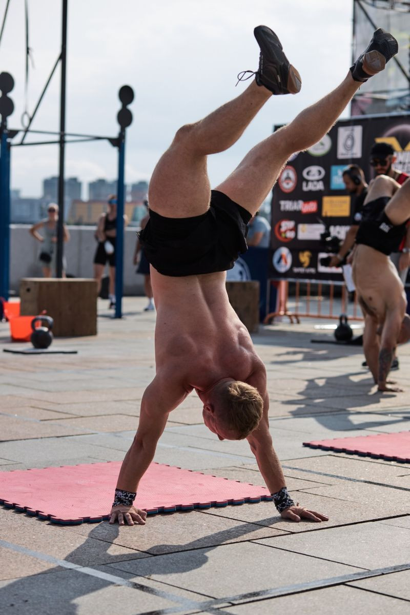 Атлетам предстояло выполнить четыре комплекса упражнений. В них входили прыжки на тумбу, выходы на перекладине, ходьба на руках с препятствиями, броски мяча, взятие и толчок штанги, подтягивание на канате, двойные прыжки на скакалке и многое другое. Для самых опытных спортсменов — это выступающие в категории А и мастера 35+, организаторы подготовили дополнительный 5-й комплекс. За 11 минут им предстояло взять максимальный вес в толчке и рывке штанги.