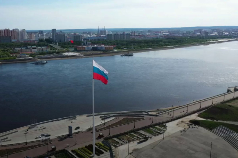 Массивное полотно российского триколора 25 на 16 метров и сегодня развевается в столице Приамурья. Флагшток установили в честь 75-летия со дня окончания Второй мировой войны. Трехцветный государственный флаг, который виден из любой точки набережной Амура.