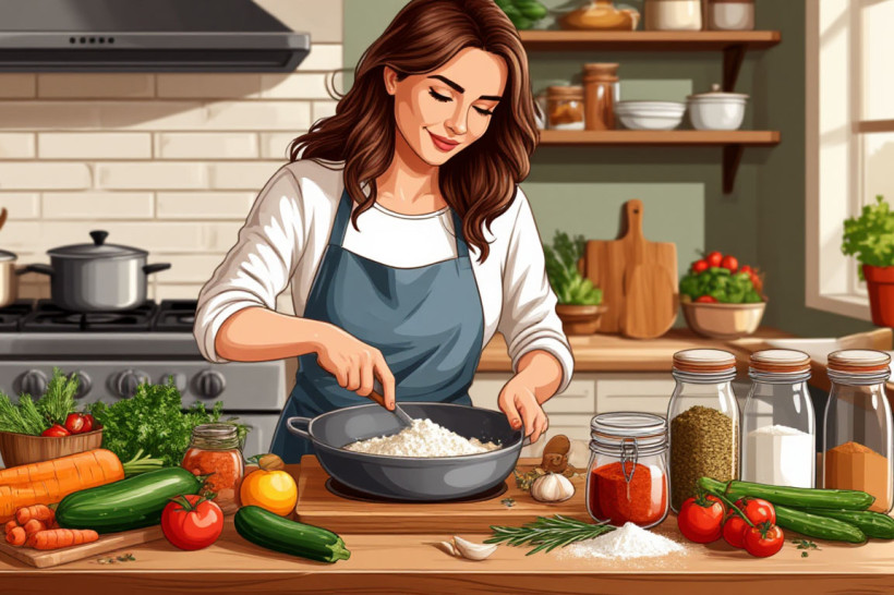 Помидоры — 4 шт. среднего размера, лук репчатый — 1 шт., рис вареный – 1,5 стак., масло сливочное — 3 ст. л., сыр пармезан (тертый) — 1/2 стак., петрушка свежая (мелкорубленая) — 2 ст. л., базилик свежий (мелкорубленый) — 1 ст. л., соль.