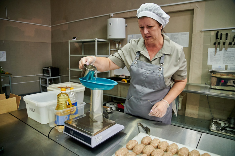В цехах Татьяна Сергеевна проводит каждый день. Труд на предприятии в основном ручной, но ей любимое дело не в тягость. Красивые ряды куриных котлеток и промытая гречка уже готовы к упаковке, к ним добавляется подсолнечное масло, а затем запайщик закрывает пачку. Будущий обед отправляется в автоклав, где готовится при температуре выше 100 градусов. Готовы консервы будут на следующий день.