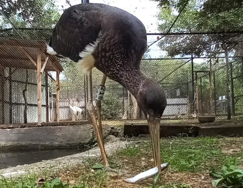 Спасенного от собак черного аиста откормили сотрудники Муравьевского парка