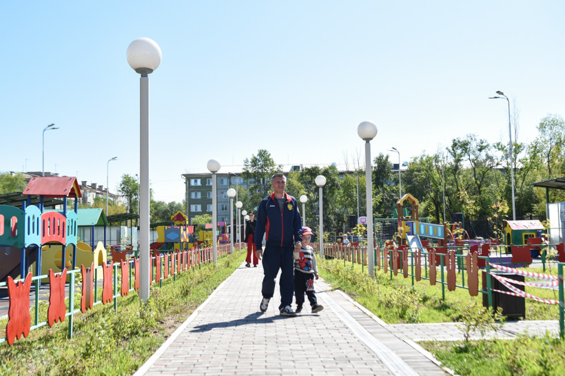 Даже не знаю, кто больше радовался обновленному детсаду и отличным площадкам для прогулок — сами малыши или их родители. «В моем детстве таких садиков не было. Сам бы сюда ходил», — улыбается молодой папа, осматривая игровое разнообразие на свежем воздухе во дворе. Открытые детские площадки разделены для групп по возрастам, везде специализированное покрытие — нет опасения, что ребенок упадет и получит травму.