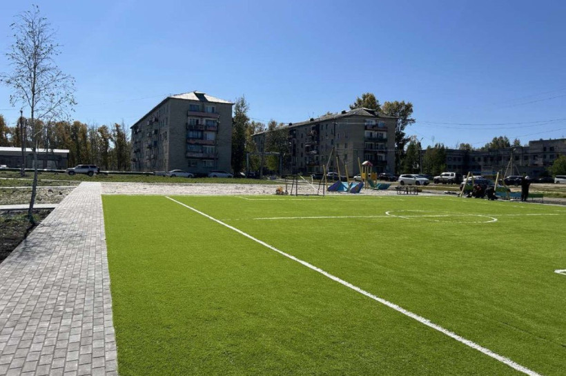 Сейчас строители занимаются установкой малых архитектурных форм. Здесь появятся песочница с навесом, качалка-балансир и карусель, двойные качели и игровой комплекс с горкой, а также лавочки и урны. Рядом расположится спортивная площадка с футбольным полем. Искусственный газон уже уложен — осталось собрать ворота для мини-футбола. В конце сентября подрядчик планирует заняться монтажом и подключением светильников — это станет завершающим этапом ремонта.