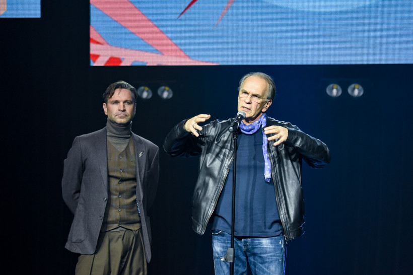 Традиционно Сергей Новожилов открыл новый сезон «Амурской осени» с кинематографической хлопушкой, а на сцену вышли все гости этого сезона фестиваля под песню белорусского певца, обладателя, по мнению поклонников, бархатного баритона Акима Тышко.