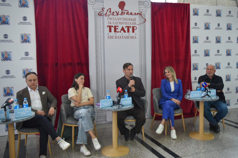 «Мы очень долго готовились к встрече с вами, и мы всегда помним, что Амур — это про любовь», — признался директор театра имени Вахтангова Кирилл Крок на открытии гастролей в Благовещенске. И эта любовь взаимна: вахтанговцев на Амуре ждали, билеты на спектакли «Амадей» (16+) и «Павел I» (16+) разлетелись в первые дни продаж. И вот уже несколько вечеров амурский зритель встречает артистов улыбками, слезами и овациями в переполненном зале Общественно-культурного центра. Как театр имени Вахтангова стал новым дыханием для «Амурской осени», почему Виктору Добронравову важно разговаривать со зрителем и кто уехал в Санкт-Петербург после последних гастролей вахтанговцев прямо в фуре с реквизитом — руководители, артисты и организаторы гастролей рассказали журналистам.