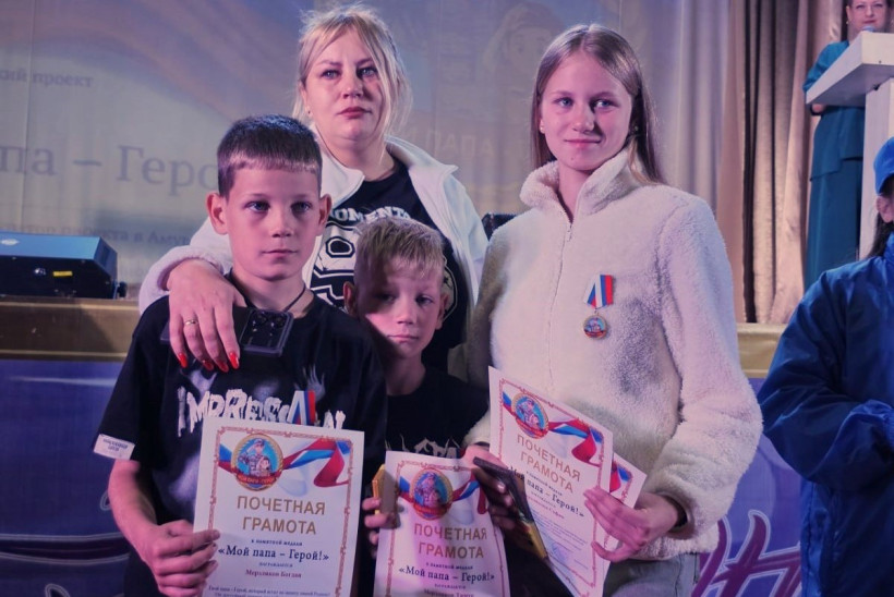 — И слезы бывают, некоторые женщины плачут на церемонии. Очень трогательное мероприятие, которое позволяет женам и детям наших защитников еще раз понять и почувствовать, что они не одни. Что их в любой момент готовы поддержать сотни земляков. И что вся страна гордится героями, которыми стали их мужья и отцы, и ждет домой. На церемонию приходят и мамы с совсем маленькими, грудными, детьми, и многодетные мамы, — рассказала куратор проекта «Мой папа — герой!» в Амурской области Анастасия Булавина.