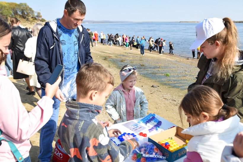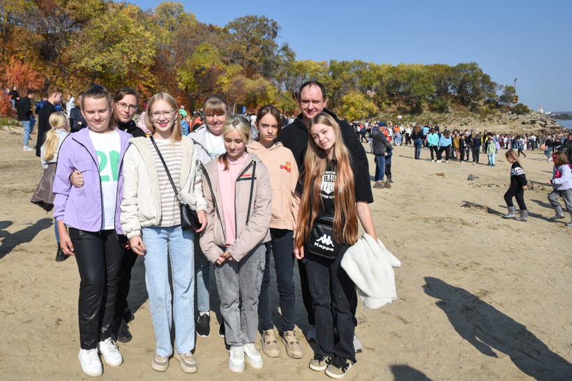 Как по заказу день выдался жарким, словно сентябрь, как в известной сказке, подменил летний месяц. Берег реки Зеи в районе спичфабрики заполняли люди — взрослые и дети в буквальном смысле не оставили тут пустого места. Большой экологический праздник собрал больше тысячи участников со всей Амурской области. 3 «Б» класс из Циолковского приехал сюда всем дружным составом.