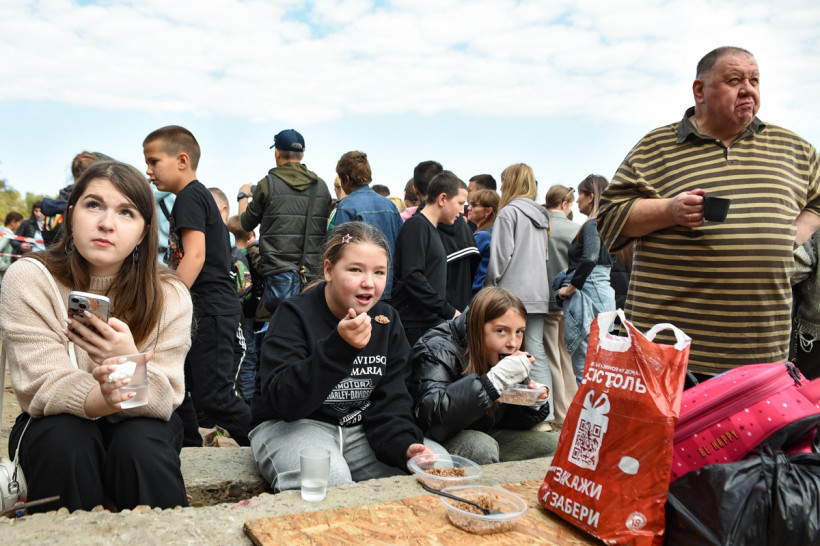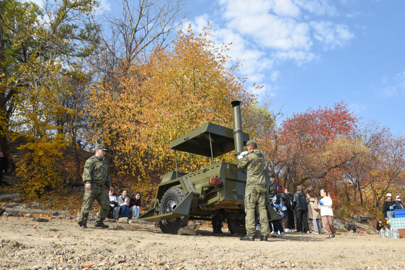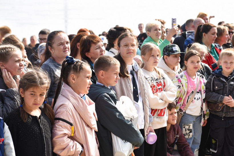 Над малышней гордо возвышаются двухметровые парни — это студенты-теплотехники Амурского колледжа строительства и ЖКХ.