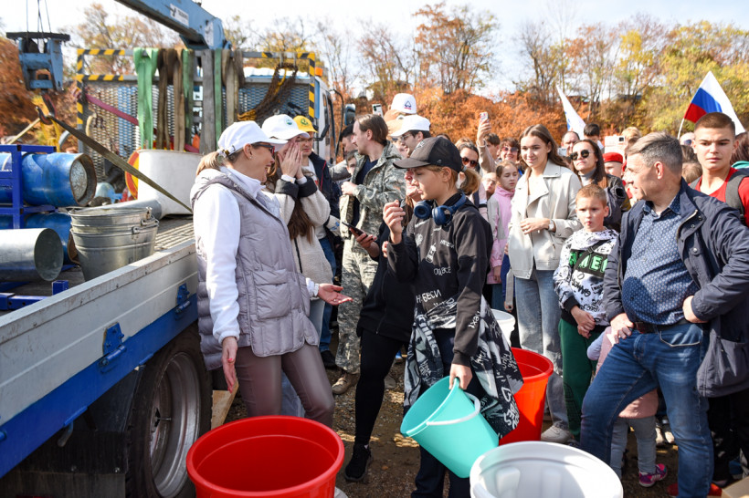 Самой долгожданной частью праздника стал выпуск мальков сазана. Эти травоядные малыши, как только подрастут, будут чистить реку от водорослей. Приехала машина с представителями водного мира с предприятия «Амурская рыба». Участники выстроились в гигантскую очередь за малышами-сазанами. Их зачерпывали в ковши и ведёрки и отправляли в новую жизнь. На лицах детей и взрослых — восторг: они точно не забудут это мероприятие.