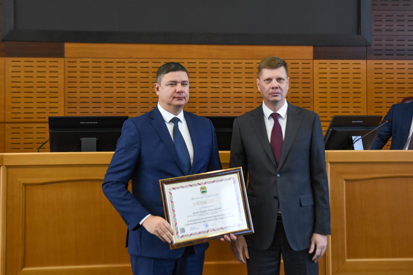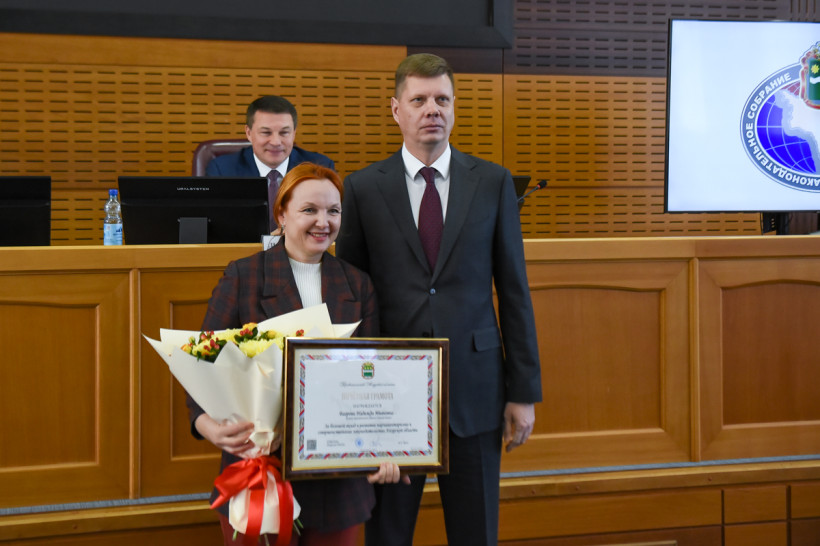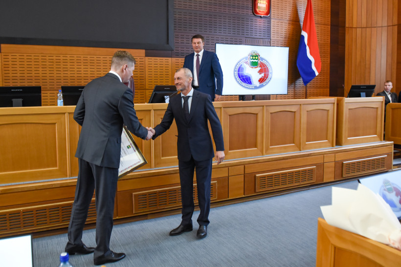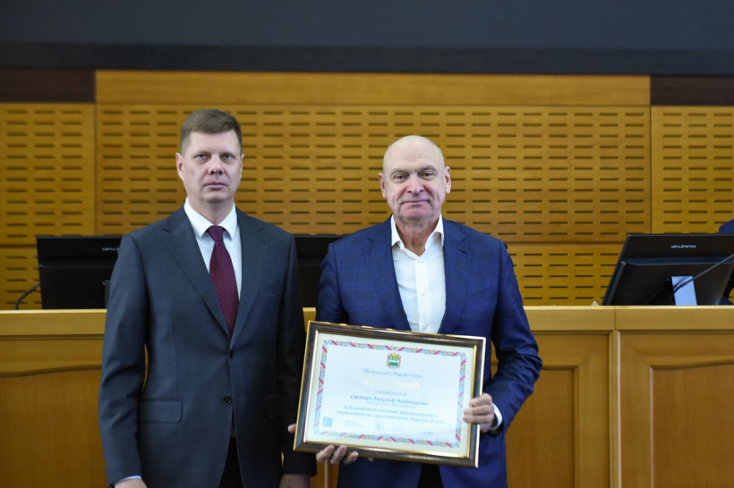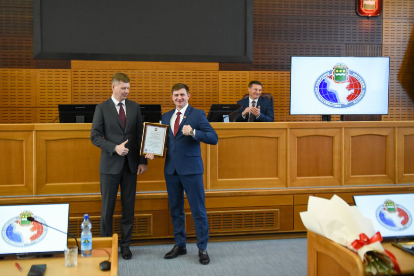 Зампред правительства Приамурья Андрей Дюмин вручил спикеру и депутатам почетные грамоты и благодарственные письма губернатора.