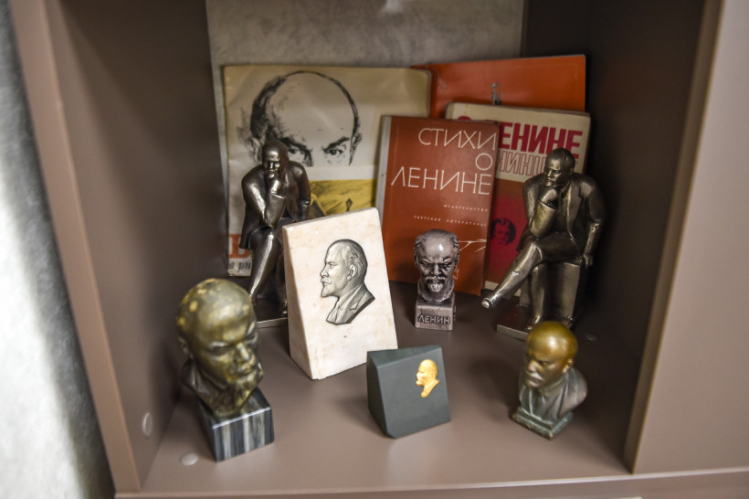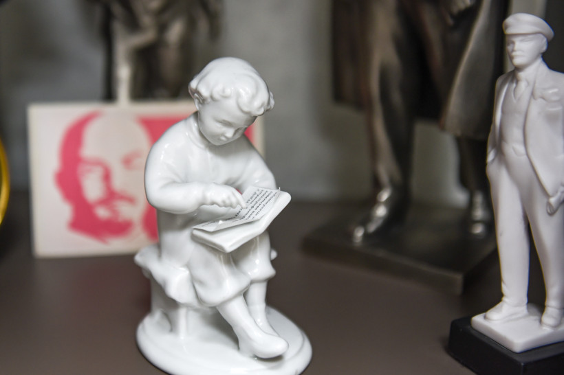 — Я ничего не планировала собирать. Просто, зная, что во дворе стоит бюст, люди несут и везут все, что связано с вождем. Как ни крути, для многих из нас Ленин не политический деятель, а человек из детства, на чьих высказываниях формировалось наше воспитание. Учиться, учиться и учиться, уважать старших, быть вежливым, помогать младшим. Разве это плохо? Так и пополняется моя коллекция, регулярно что-то двигаю, собираю в сюжеты, у меня тут целая композиция была — Ленин пишет замечание в дневник мальчику, который разбил окно, — показывает на полки с коллекцией жительница Соловьевска. — И целая серия книг есть «Жизнь Ленина», и даже пластинка с записью речи Ленина.