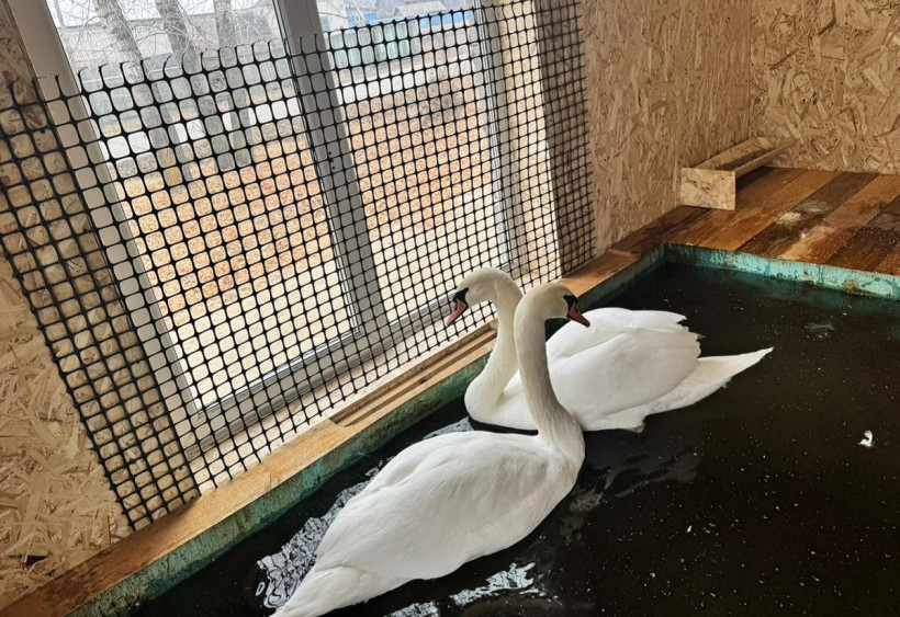 Для пернатых здесь создали все необходимые условия. Есть даже отдельная комната для приготовления корма, проведен септик, и знаменитая пара белых лебедей Петр с новой супругой Февронией уже с удовольствием плавают в новом бассейне.