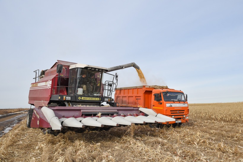 тысячи тонн кукурузы на зерно намолочено в Амурской области на 12 ноября, средняя урожайность — 66 центнеров с гектара