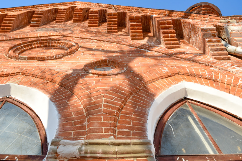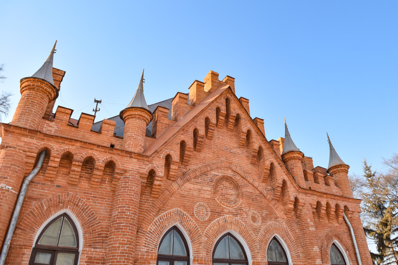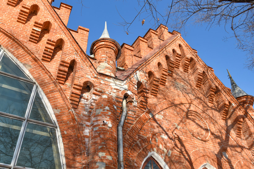 — Согласно проекту, мы должны провести фасадные работы и заменить два витража, — рассказывает руководитель фирмы «Камила» Роман Горынин. — Уже проведена частичная реставрация фасада, в ходе которой кирпичи очищены от краски, чтобы предстать в своем первозданном виде, какими они были в начале прошлого века.